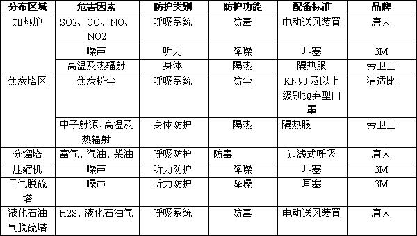職業(yè)危害分布及配備標(biāo)準(zhǔn):